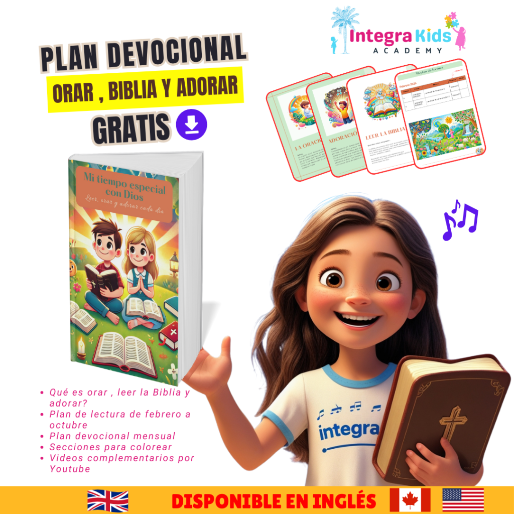En IntegraKids Academy, nuestra misión no es solo educar, sino sembrar la Palabra de Dios en el corazón de cada niño. Como parte del ministerio Propósito Vida Integra, creemos que el crecimiento espiritual es tan importante como el desarrollo académico. Por eso, nuestras herramientas, recursos y comunidad están diseñados para ayudarte a integrar a Dios en el día a día de tus hijos.